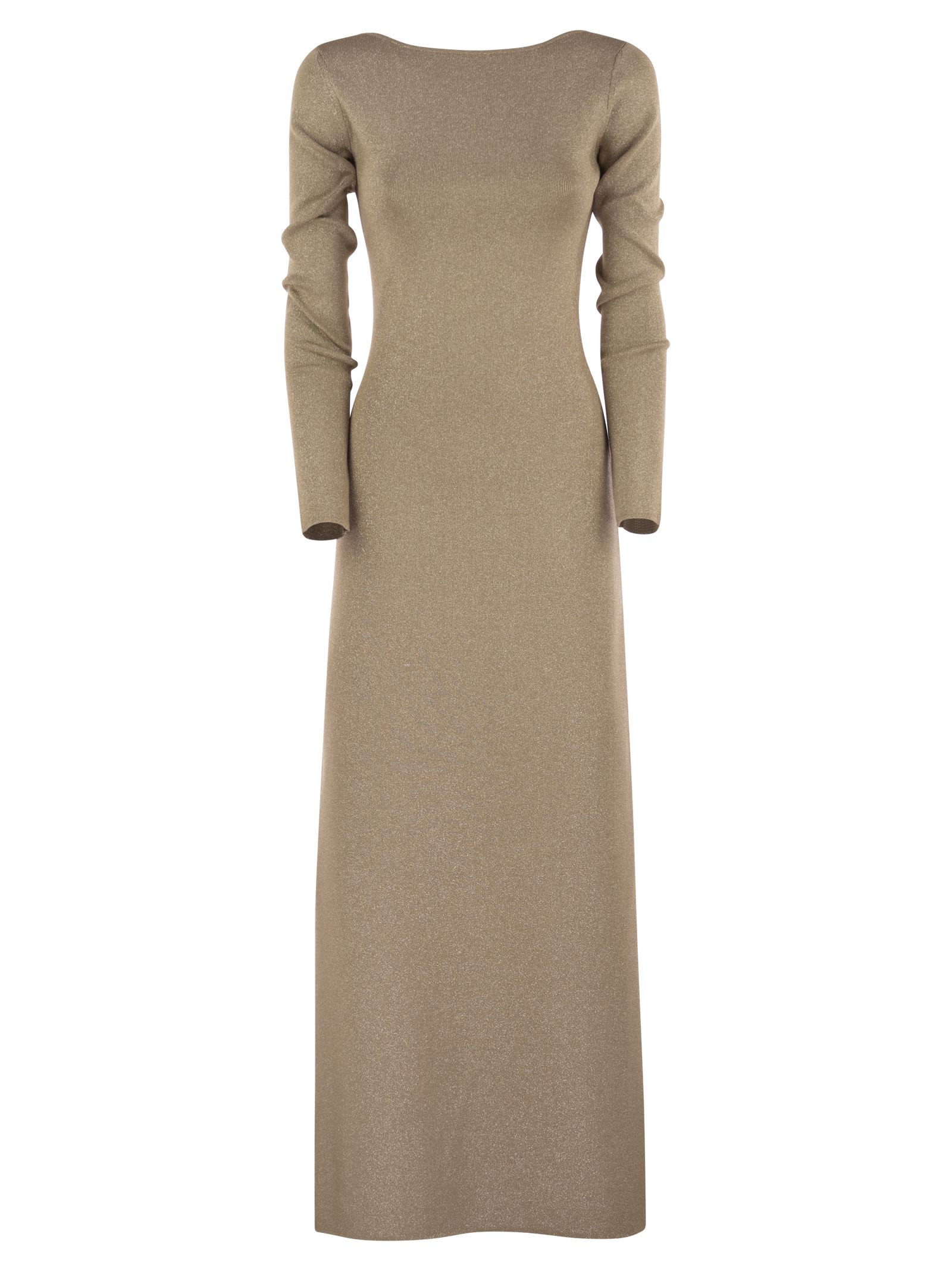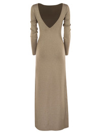 Elegant long dress in plain knit viscose yarn and lurex with a fitted, feminine silhouette. - Worked in vanise with Lycra® - Deep V-neck on the back - Long round sleeves - Unlined DESIGNER ID: 2521326027600 001 67% Viscose, 17% Metallized, 15% Polyamide, 1% Elastane Size Type: INT SKU: 2521326027600001 Our Products Are 100% Genuine. In All Cases We Stand By The Authenticity Of Every Product Sold On Our Site. All sales are final and we only accept returns for quality issue. Buyer is responsible for any import tax/duty if applicable.