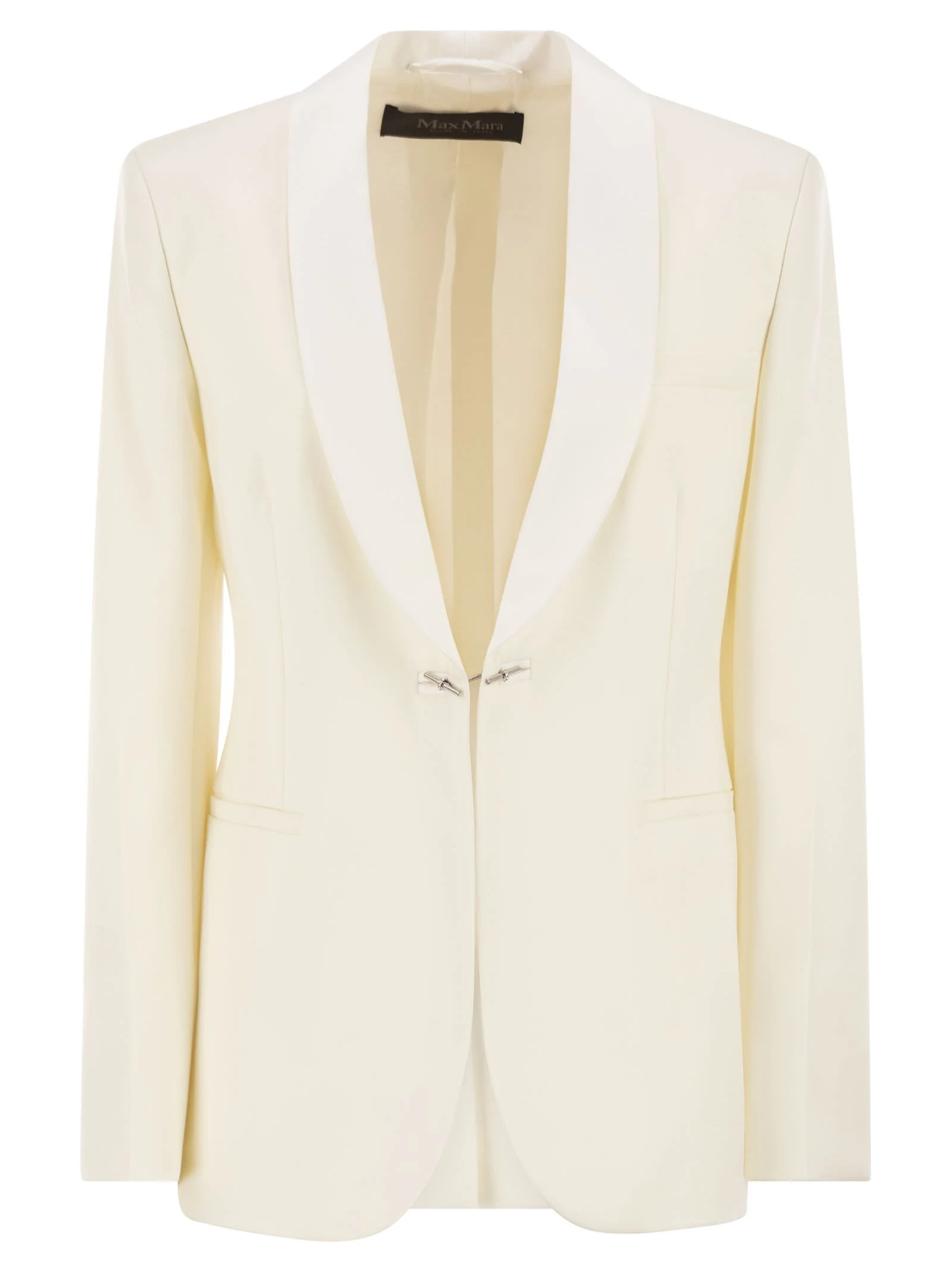 Single-breasted blazer in pure wool gabardine with an organza finish and a feminine silhouette. - Fitted waist - Satin tuxedo lapels - Set-in sleeves with cut-out detail on the inner elbow - Cuff closure with chain and jewelled button - Chest pocket and welt pockets on the sides - Lined in Monogram jacquard fabric DESIGNER ID: 2521046024600 001 100% Virgin wool 2 Fabric: 100% Polyester Lining: 65% Acetate, 35% Polyester Size Type: IT SKU: 2521046024600001 Our Products Are 100% Genuine. In All Cases We Stand By The Authenticity Of Every Product Sold On Our Site. All sales are final and we only accept returns for quality issue. Buyer is responsible for any import tax/duty if applicable.