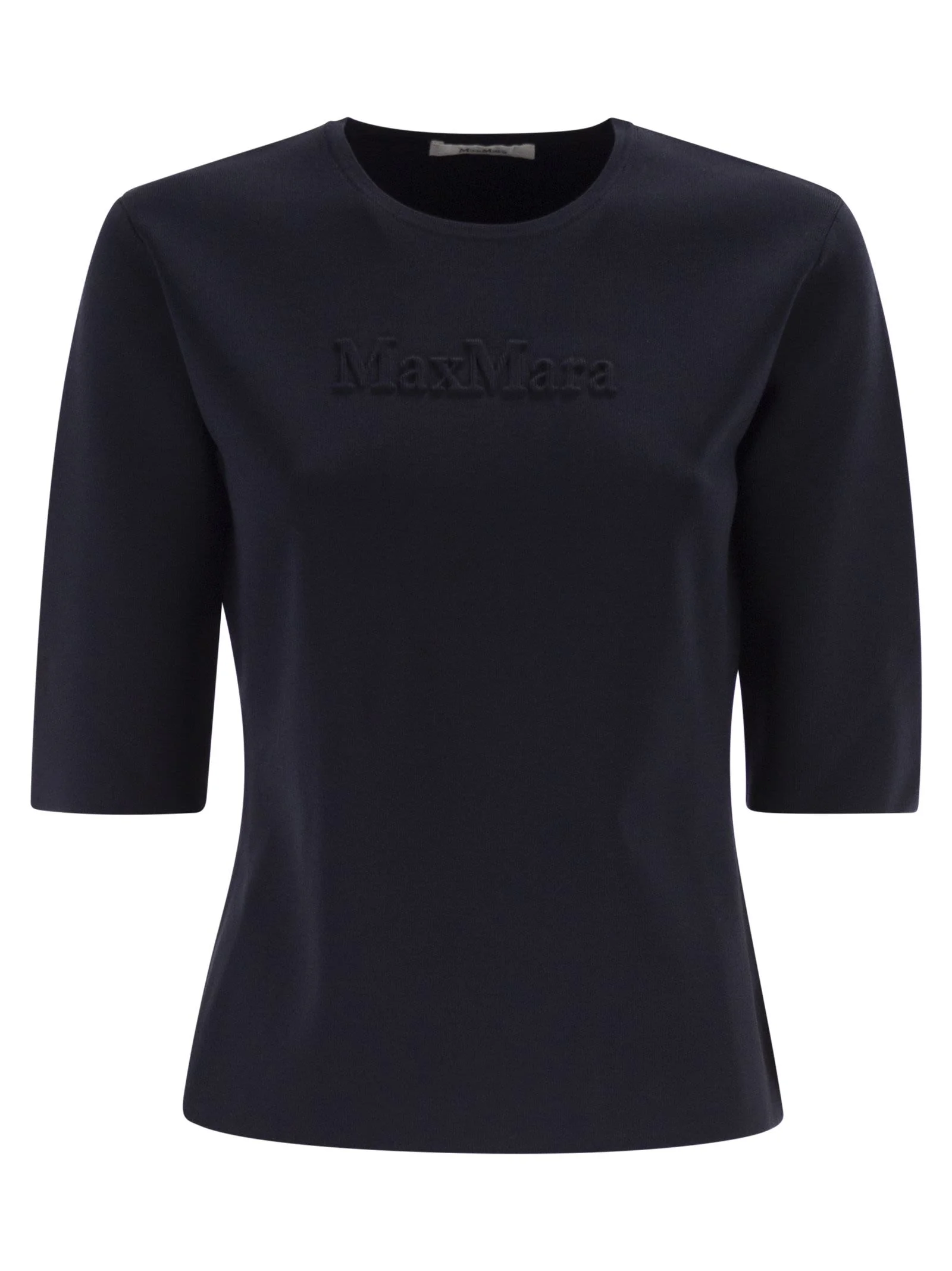 Max Mara top in compact viscose and polyamide jersey, a fluid and comfortable fabric that guarantees a flawless fit and a pleasant feel against the skin. The model features a round neckline and short sleeves, with a simple silhouette that naturally enhances the figure. The tone-on-tone Max Mara logo embroidered on the chest adds a discreet yet distinctive detail, expressing the brand's understated elegance. Versatile and contemporary, this top pairs easily with tailored blazers, flowing trousers or denim, adapting effortlessly to everyday and more refined looks. - Round neckline - Short sleeves - Tone-on-tone embroidered Max Mara logo on the front - Straight line - Regular fit DESIGNER ID: 2611361098600 004 65% Viscose, 35% Polyamide Size Type: INT SKU: 2611361098600004 Our Products Are 100% Genuine. In All Cases We Stand By The Authenticity Of Every Product Sold On Our Site. All sales are final and we only accept returns for quality issue. Buyer is responsible for any import tax/duty if applicable.