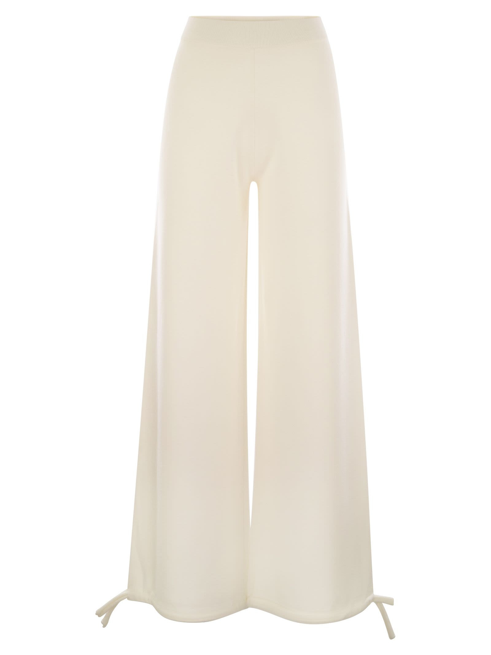 Trousers in fine wool yarn in cloth stitch with wide leg and drawstring pattern at hem. - Wide fit - Ribbed elasticated waist - Unlined DESIGNER ID: 2521336011600 001 100% Virgin wool Size Type: INT SKU: 2521336011600001 Our Products Are 100% Genuine. In All Cases We Stand By The Authenticity Of Every Product Sold On Our Site. All sales are final and we only accept returns for quality issue. Buyer is responsible for any import tax/duty if applicable.