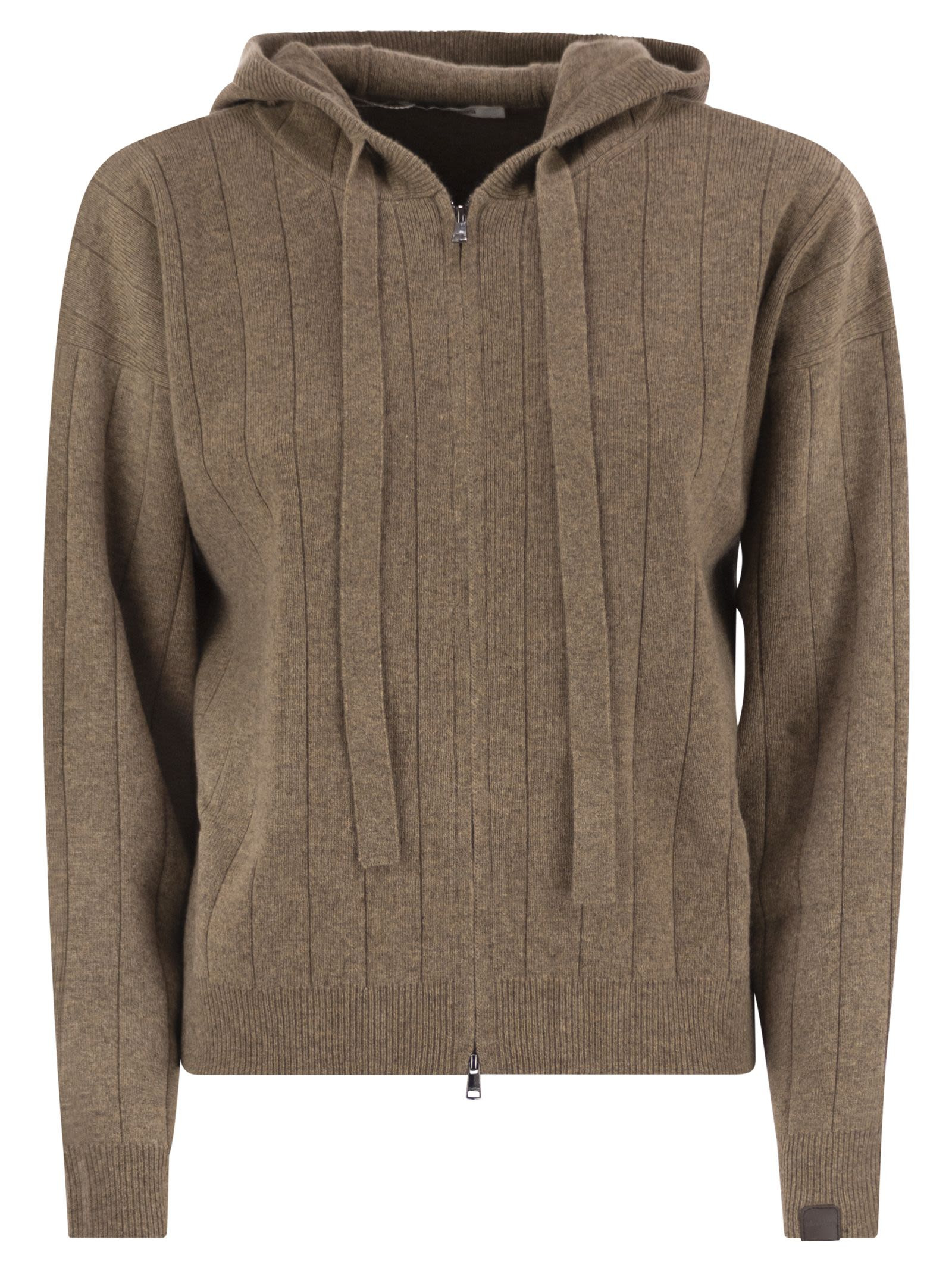 Cardigan in pure cashmere yarn with drawstring hood and slightly cropped waist, entirely worked in wide ribbing. - Straight line and comfortable fit - Long sleeves with low armholes - Front closure with double-slider zip - Leather logo label on the left cuff - Ribbed edges DESIGNER ID: 2521346029600 002 100% Cashmere Size Type: INT SKU: 2521346029600002 Our Products Are 100% Genuine. In All Cases We Stand By The Authenticity Of Every Product Sold On Our Site. All sales are final and we only accept returns for quality issue. Buyer is responsible for any import tax/duty if applicable.