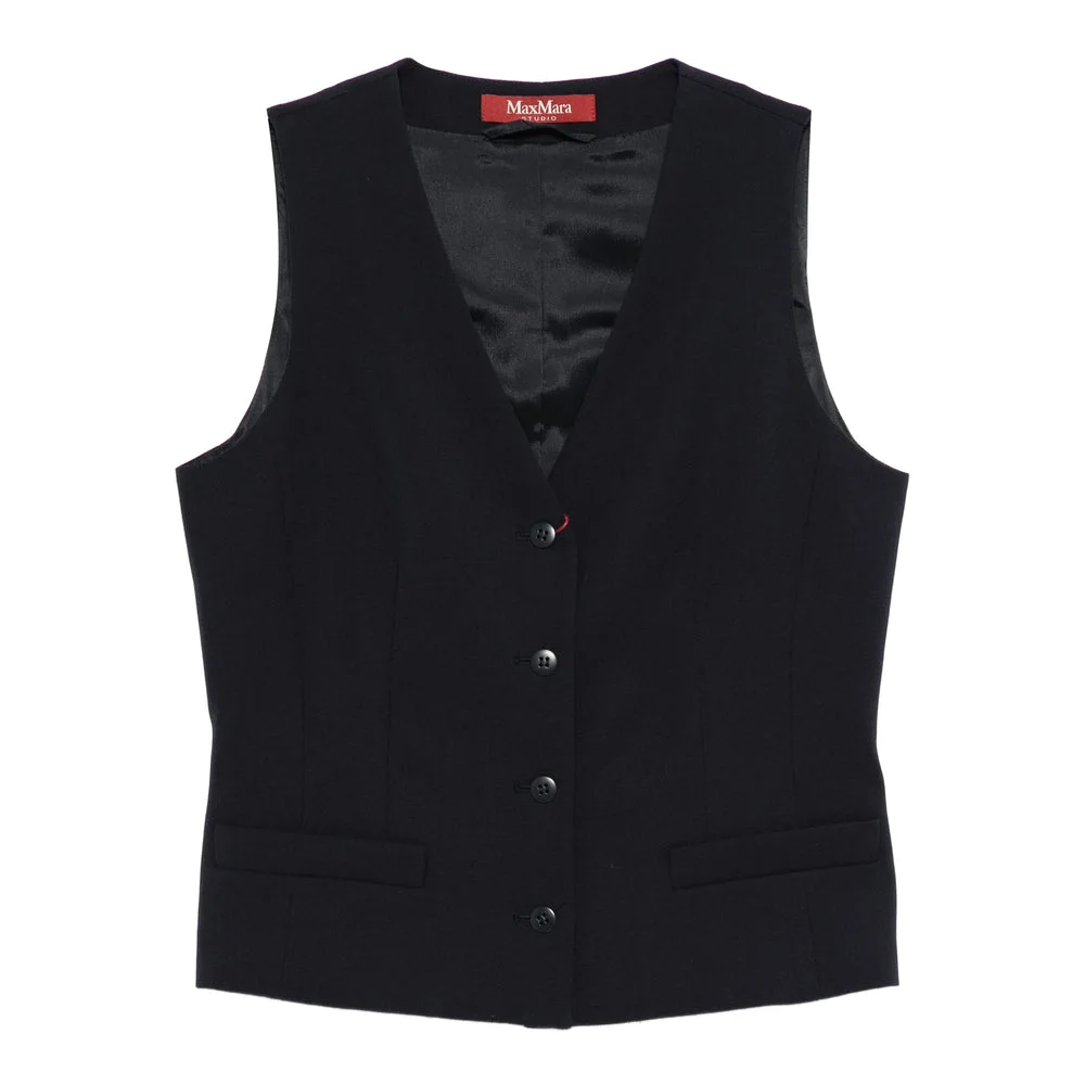 black V-neck button fastening sleeveless MADE IN:BangladeshMATERIAL:Lining Composition Polyester: 30.0%, Lining Composition Acetate: 70.0%, Outer Composition Virgin Wool: 100.0%COLOR:BLUE SKU: MSTMADIA331004 Our Products Are 100% Genuine. In All Cases We Stand By The Authenticity Of Every Product Sold On Our Site. All sales are final and we only accept returns for quality issue. Buyer is responsible for any import tax/duty if applicable.
