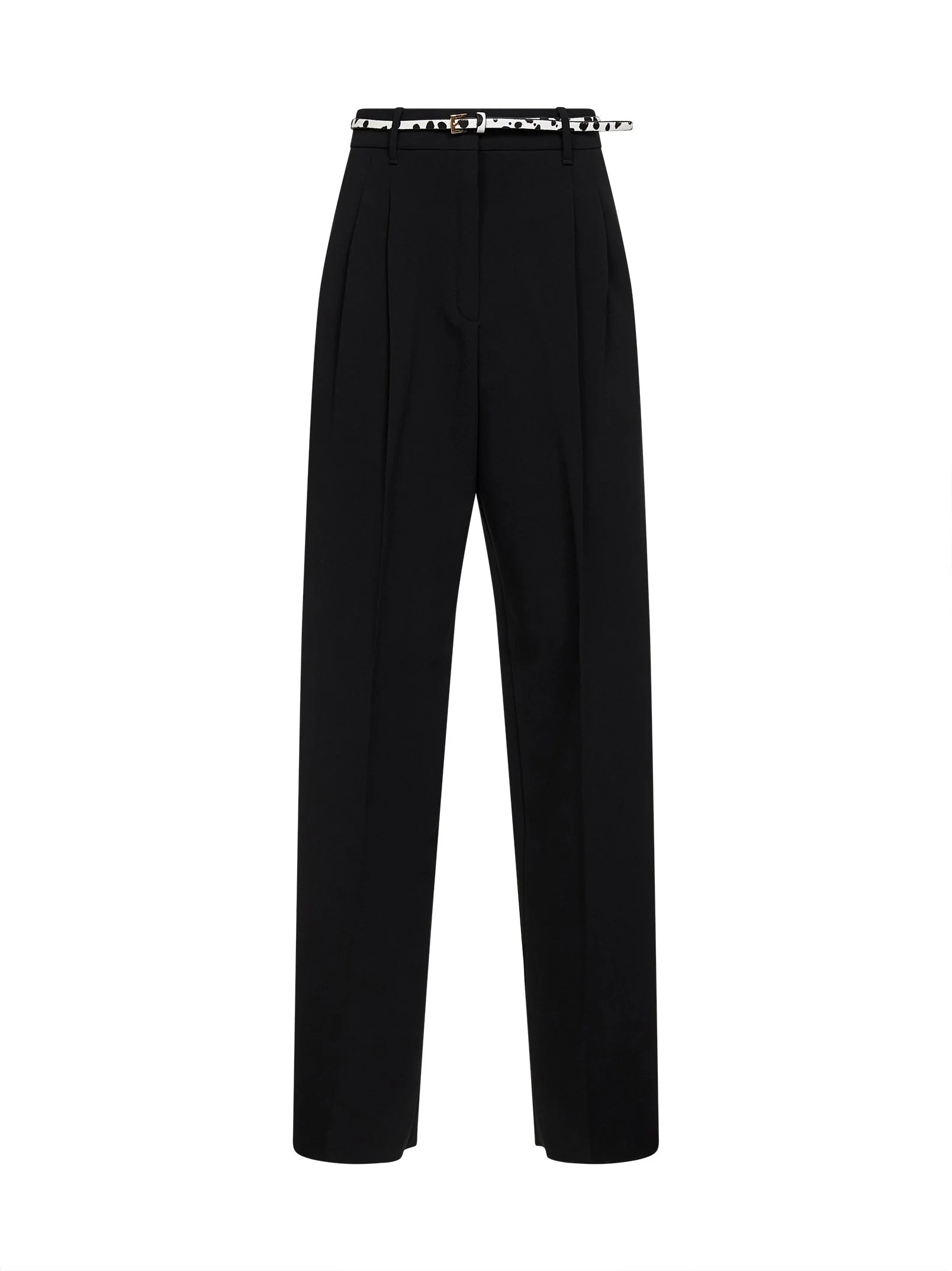 •Front zip-fly closure •High-rise waist with belt loops; thin adjustable and detachable cow-effect calf hair belt at the waist with metal buckle •Side slant pockets, finished with a tailored pick stitch •Double front pleat, one of which is shaded •Pressed legs creases •Wide leg slightly closed at bottom •Fluid fit •Black color •71% Triacetate, 29% Polyester •Made in Romania SKU: 2616131015600mstcorvino001 Our Products Are 100% Genuine. In All Cases We Stand By The Authenticity Of Every Product Sold On Our Site. All sales are final and we only accept returns for quality issue. Buyer is responsible for any import tax/duty if applicable.
