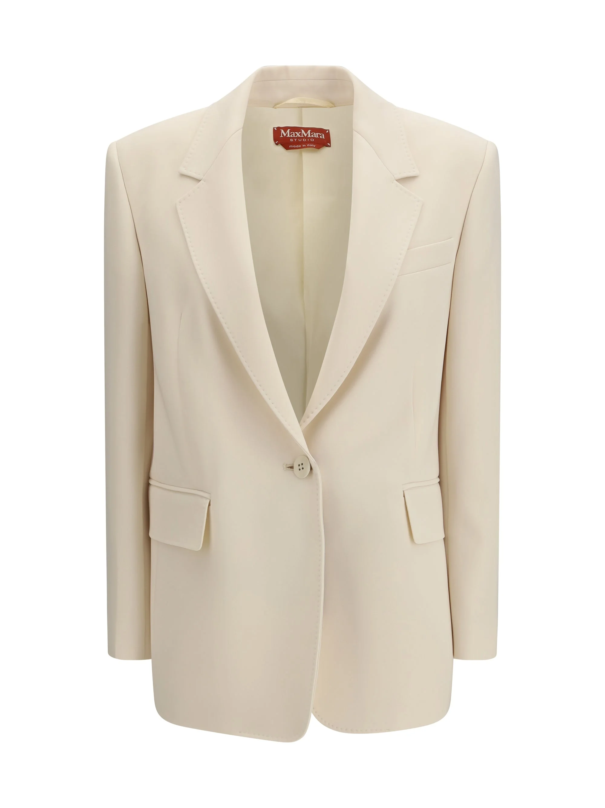 The Bosco Blazer by Max Mara Studio is crafted from cady and delivers a clean, timeless tailored elegance. Designed with a single-breasted button closure in matching tone and classic lapels, it features a refined, structured silhouette. The blazer is finished with a mixed acetate lining, side welt pockets with flaps and a chest welt pocket. Buttoned cuffs and a central back vent enhance comfort and ease of movement, while the regular fit ensures a balanced and polished look. Size Type: IT SKU: 2616041025600060 Our Products Are 100% Genuine. In All Cases We Stand By The Authenticity Of Every Product Sold On Our Site. All sales are final and we only accept returns for quality issue. Buyer is responsible for any import tax/duty if applicable.