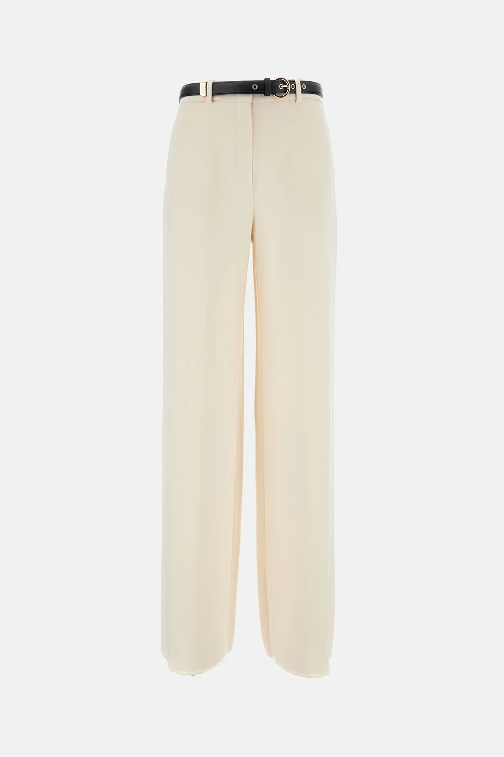 Description: White cady trousers Wide leg Closure with high waistband, zip fly, and hook-and-eye French pockets on the hips Double-welt pockets with button on the back Matching nappa leather belt with a circular buckle Belt loops and stitched darts at the back waistMade in: Romania SKU: 2616131025600060 Our Products Are 100% Genuine. In All Cases We Stand By The Authenticity Of Every Product Sold On Our Site. All sales are final and we only accept returns for quality issue. Buyer is responsible for any import tax/duty if applicable.