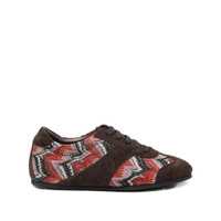 brown suede leather patterned textile inserts lace-up fastening flat sole The item you receive may differ slightly from the item photographed. This is due to the artisanal nature with which all Missoni products are constructed. MADE IN:ItalyMATERIAL:Lining Composition Calf Leather: 100.0%, Outer Composition Goat Suede: 100.0%, Sole Composition Rubber: 100.0%, Outer Composition Fabric: 100.0%COLOR:BROWN SKU: MWF140099 Our Products Are 100% Genuine. In All Cases We Stand By The Authenticity Of Every Product Sold On Our Site. All sales are final and we only accept returns for quality issue. Buyer is responsible for any import tax/duty if applicable.