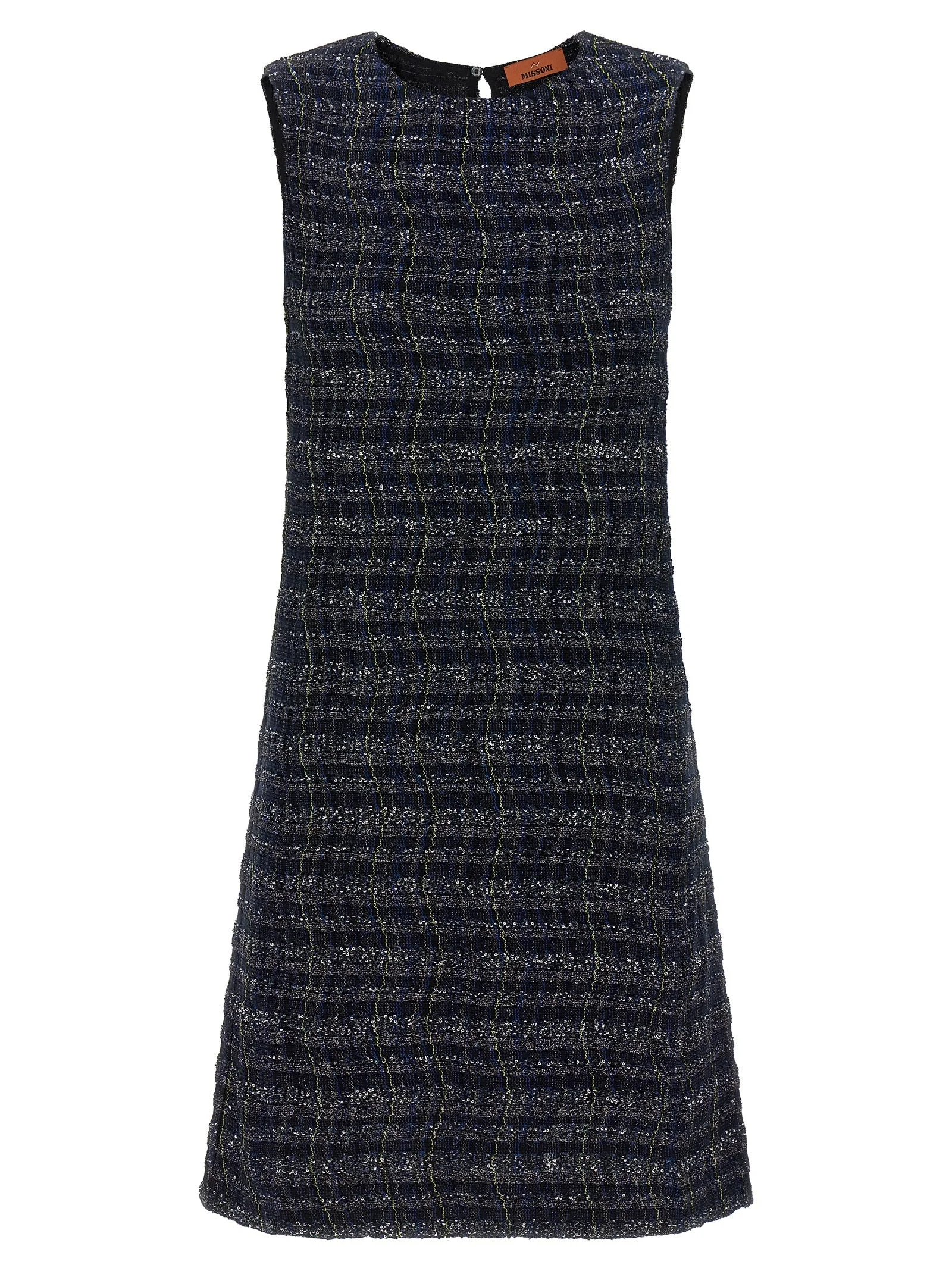 Mini dress in viscose blend with lame filaments and Caperdoni textured frame with check wave pattern, flared, sleeveless silhouette, crew neck with back button closure and cut-out teardrop detail, lining. true to size fit 63% vi, 16% pa, 8% me, 7% wo, 3% co, 3% pl SKU: DS25WG41BC005WS91R5 Our Products Are 100% Genuine. In All Cases We Stand By The Authenticity Of Every Product Sold On Our Site. All sales are final and we only accept returns for quality issue. Buyer is responsible for any import tax/duty if applicable.