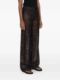 Wide fishnet trousers with zigzag pattern and sequins