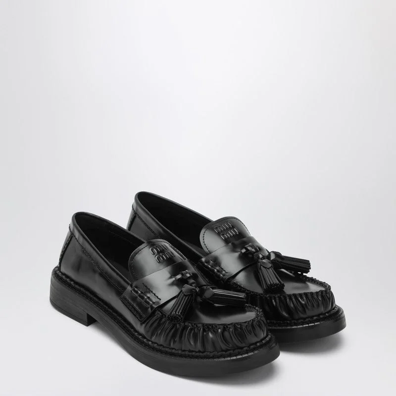 Miu Miu Black Brushed Leather Loafers With Tassels Women