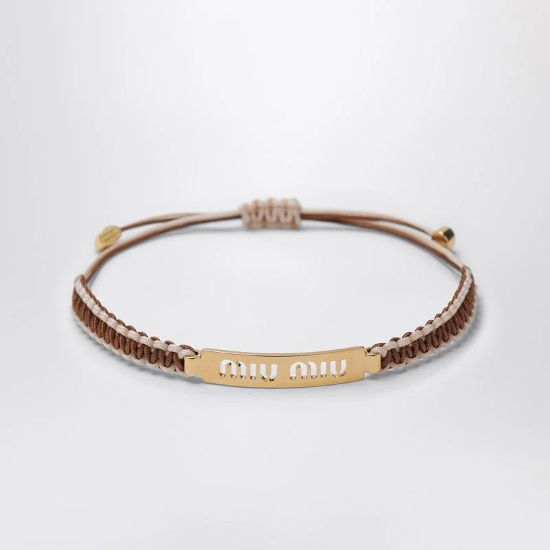 Miu Miu Brown/Sand Beige Braided Cord Bracelet Women