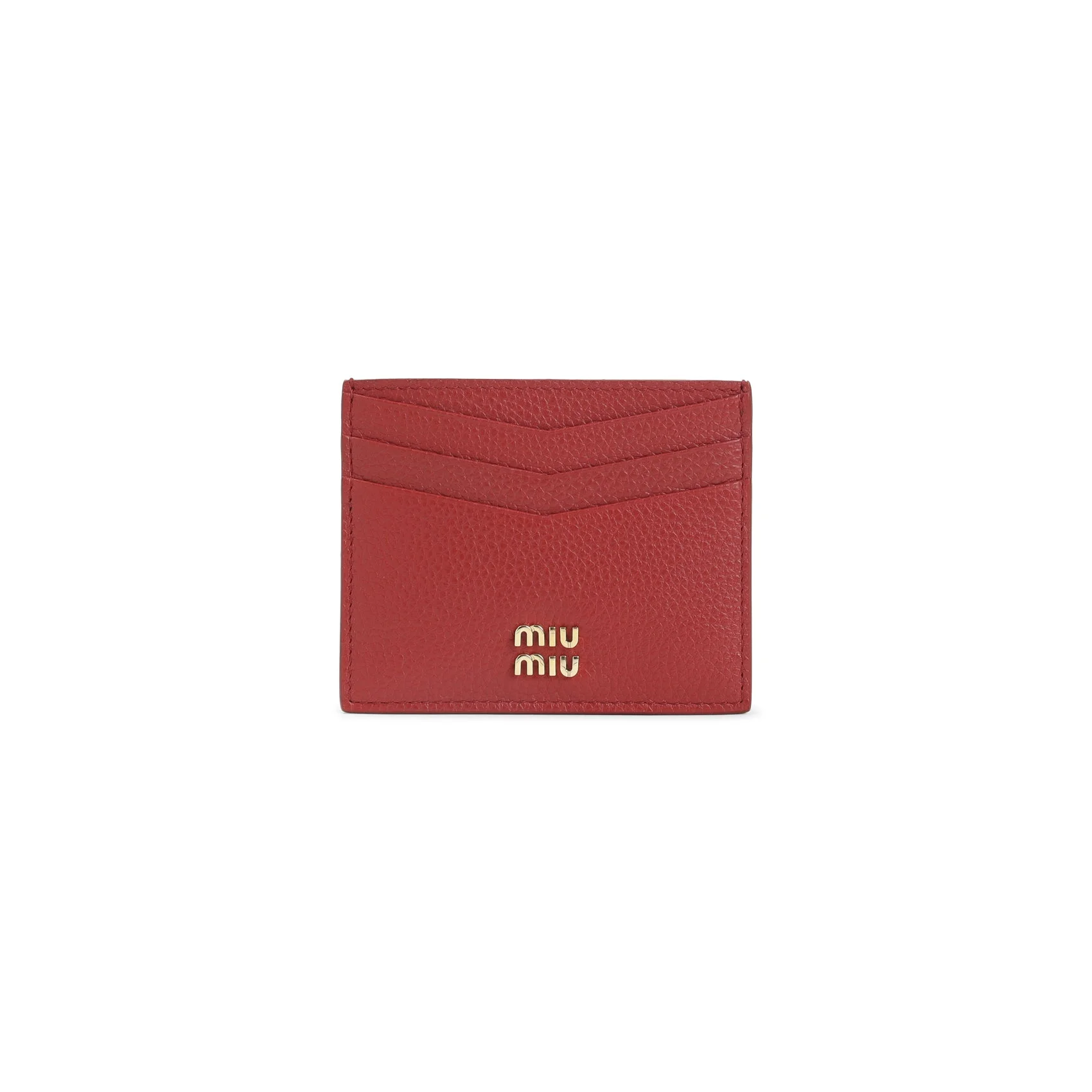 Miu Miu Red Calf Leather Card Case. Crafted from red grained leather, featuring a gold-toned metal lettering logo on the front, three V-line card slots on the front and back, and one central top slot. Leather | 100%CALF LEATHER W:10cm H:8cm D:0,5cm Size Type: One Size SKU: 5MC002ADT7Red Our Products Are 100% Genuine. In All Cases We Stand By The Authenticity Of Every Product Sold On Our Site. All sales are final and we only accept returns for quality issue. Buyer is responsible for any import tax/duty if applicable.