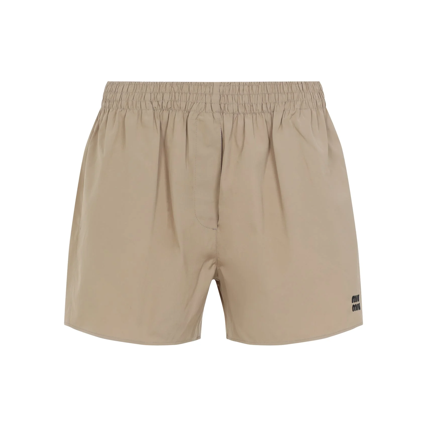 Miu Miu Khaki Cotton Shorts. Crafted from khaki cotton, elastic waistband, inseam side pockets, embroidered logo at the edge, straight hem. Cotton | 100%COTTON Size Type: IT SKU: MP1907SOOO10RGGreen Our Products Are 100% Genuine. In All Cases We Stand By The Authenticity Of Every Product Sold On Our Site. All sales are final and we only accept returns for quality issue. Buyer is responsible for any import tax/duty if applicable.