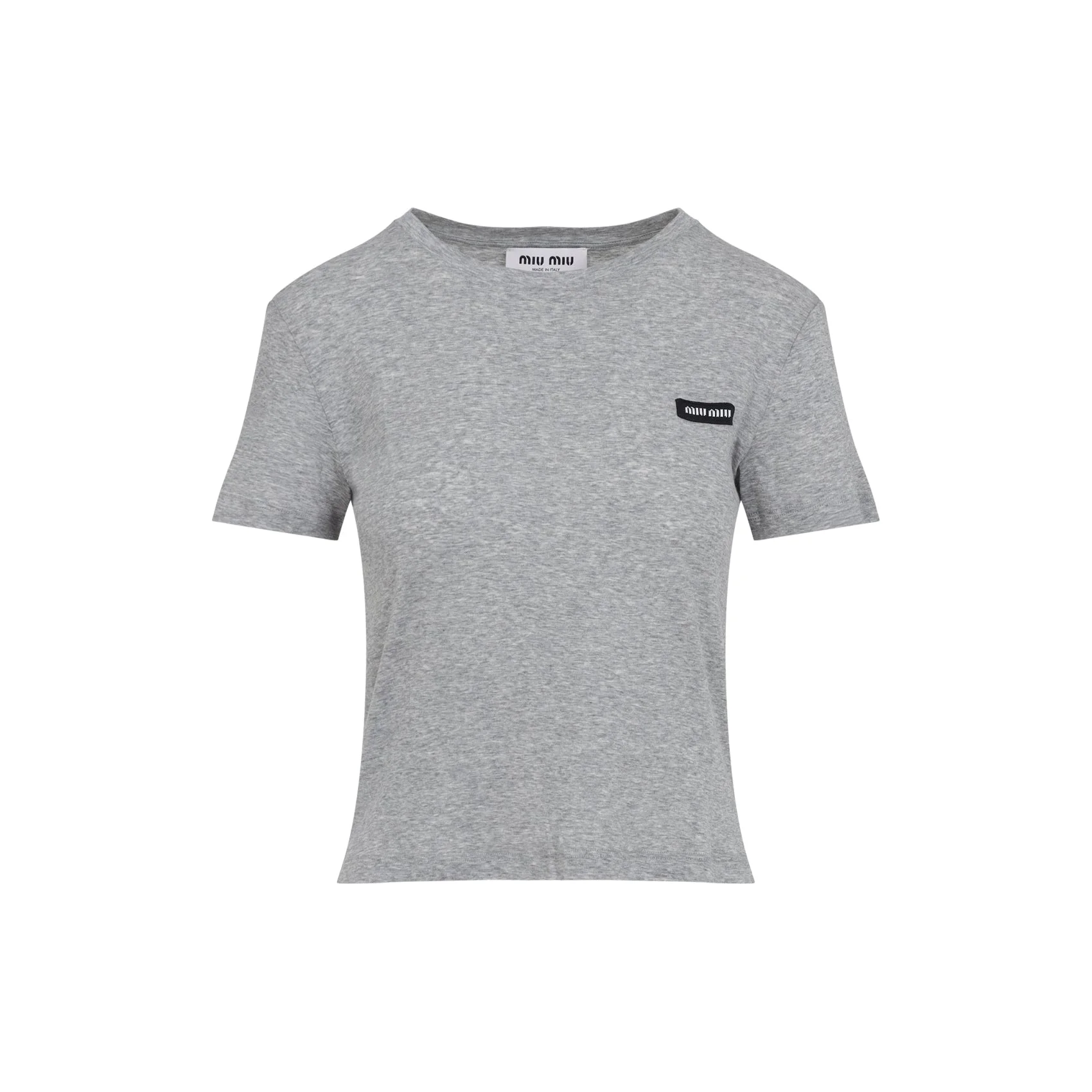 Miu Miu Grey Cotton T-shirt. Crafted from melange grey cotton jersey, round ribbed neckline, logo label on the chest, short sleeves, straight hem, slim fit. Cotton | 100%COTTON Size Type: INT SKU: MJN466S231133OGrey Our Products Are 100% Genuine. In All Cases We Stand By The Authenticity Of Every Product Sold On Our Site. All sales are final and we only accept returns for quality issue. Buyer is responsible for any import tax/duty if applicable.
