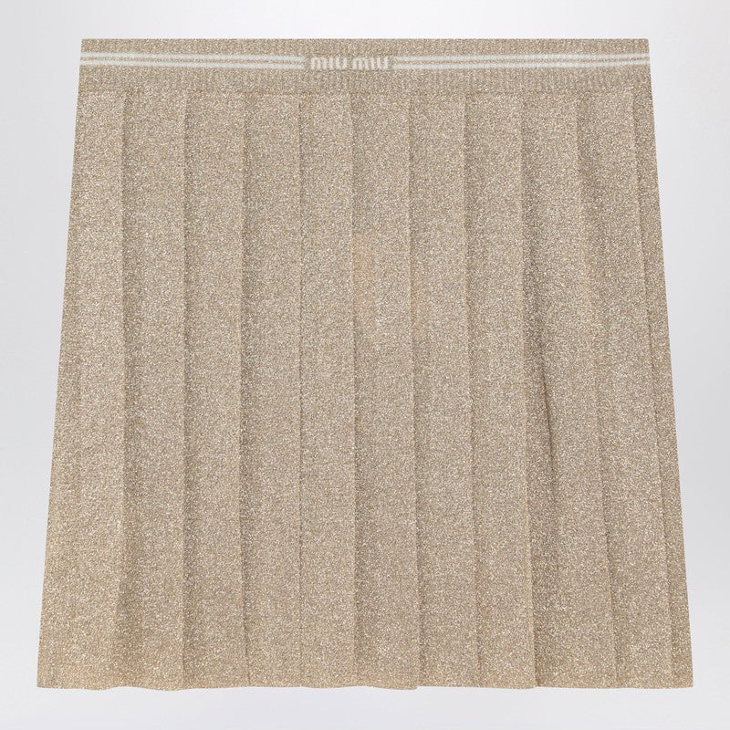 Miu Miu Gold Pleated Lurex Miniskirt Women