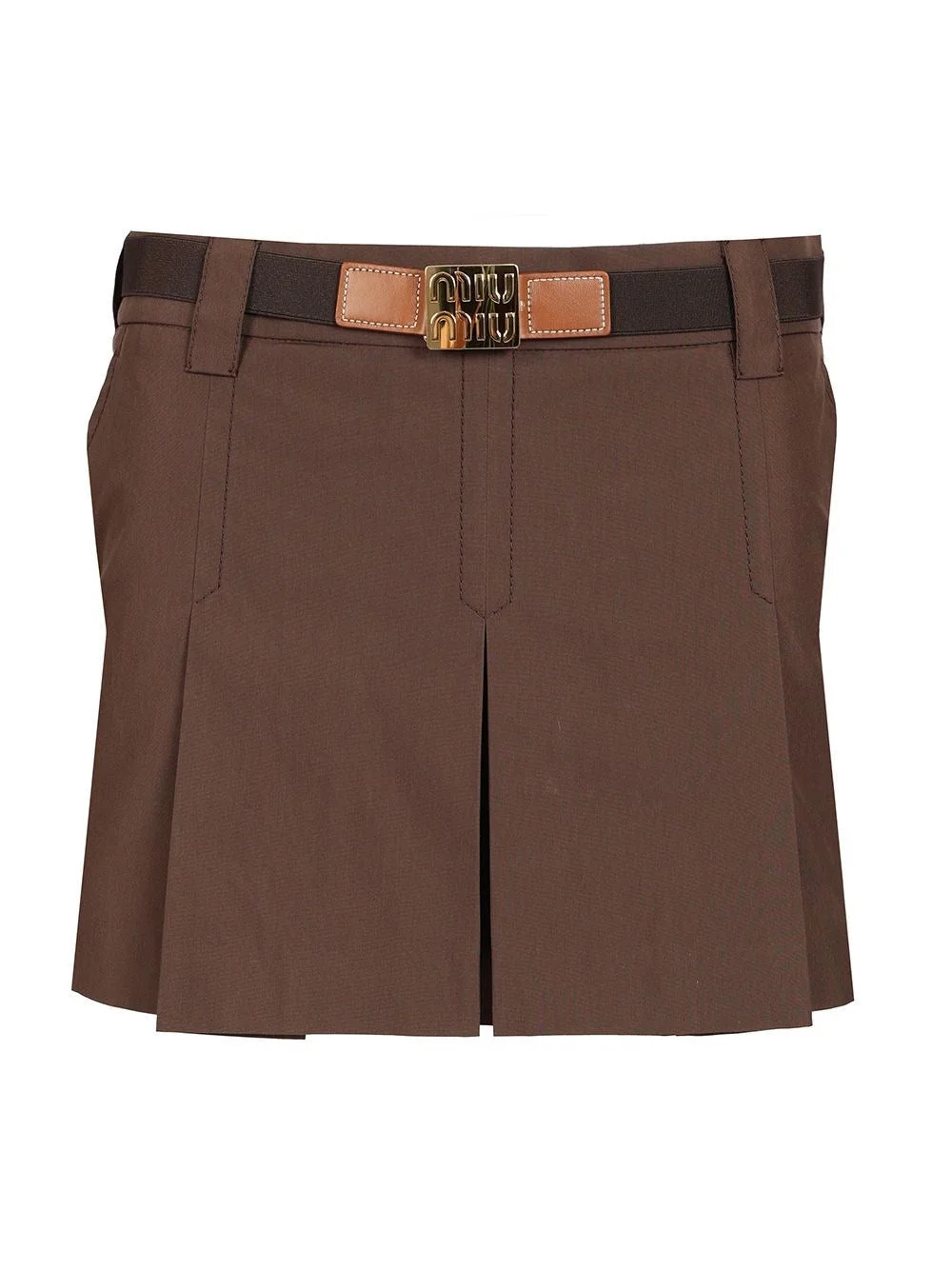 Gabardine mini skirt by Miu Miu, with hook and zip fastening on the side, logo on the buckle and welt pockets 0 75%CO 25%PL 75% COTONE 25% POLIESTERE FODERA TASCHE 100% VISCOSA CINTURA : 74% POLIESTERE 26% ELASTAN CONTIENE PARTI NON TESSILI DI ORIGINE ANIMALE DETTAGLI PELLE DI VITELLO DETTAGLI PELLE DI AGNELLO Made in: IT SKU: MG2485SOOO12NSF0324 Our Products Are 100% Genuine. In All Cases We Stand By The Authenticity Of Every Product Sold On Our Site. All sales are final and we only accept returns for quality issue. Buyer is responsible for any import tax/duty if applicable.