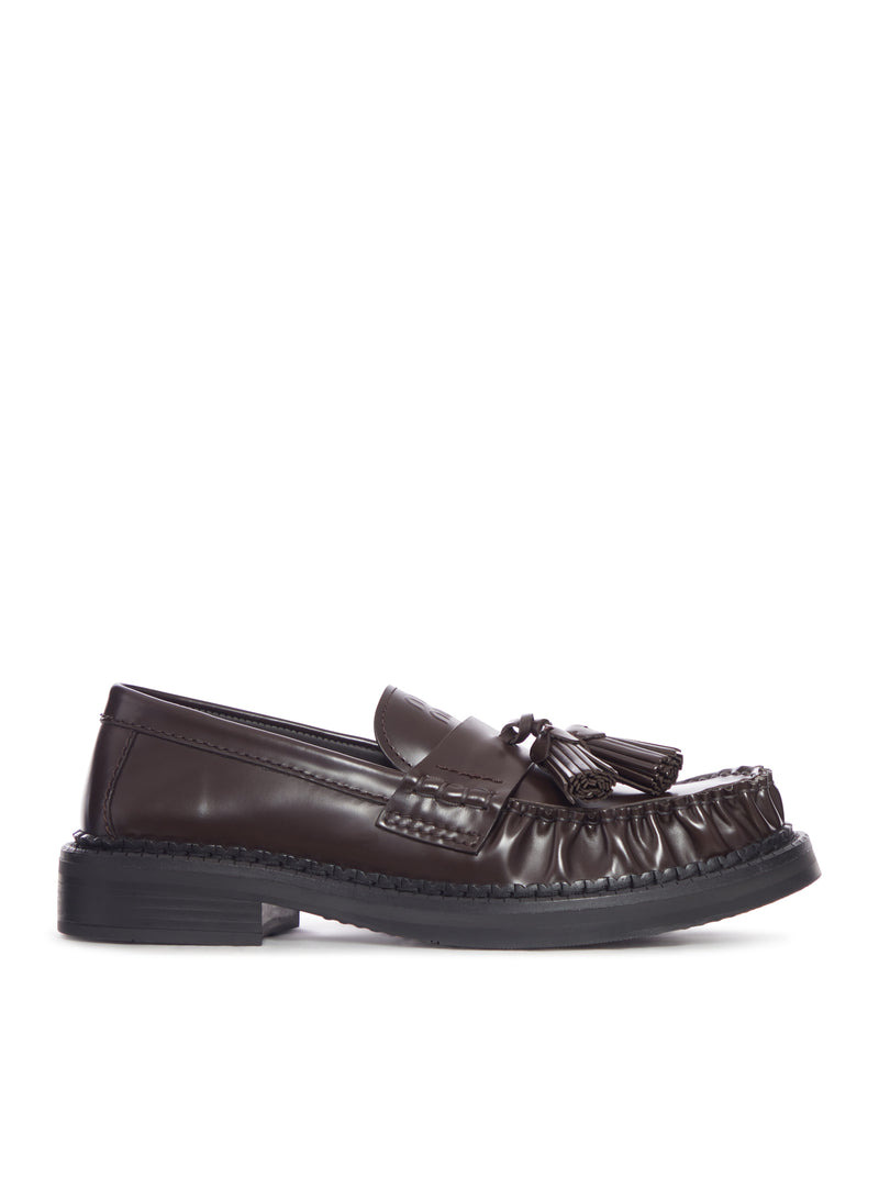 - Embossed logo on the tongue - 5 mm flat heel - Rounded moccasin-style toe - Notched vamp with tassel strap - Slip-on style - Exterior: 100% patent leather - Lining: 100% calfskin - Sole: 100% calfskin Made in Italy Composition: Calf Leather 100%CALF LEATHER Color code: F0003 MORO Size Type: IT SKU: 5D497EF030055 Our Products Are 100% Genuine. In All Cases We Stand By The Authenticity Of Every Product Sold On Our Site. All sales are final and we only accept returns for quality issue. Buyer is responsible for any import tax/duty if applicable.