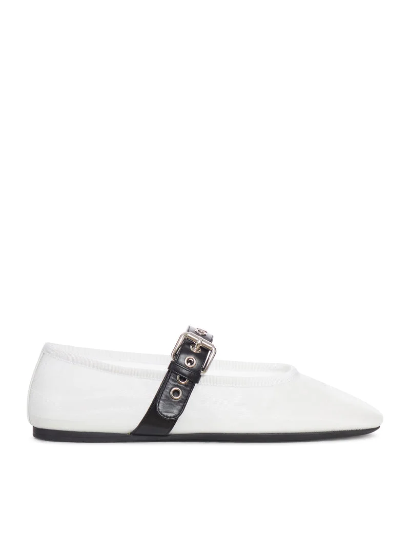 Miu Miu Women Mesh Ballerinas With Contrasting Leather Buckle