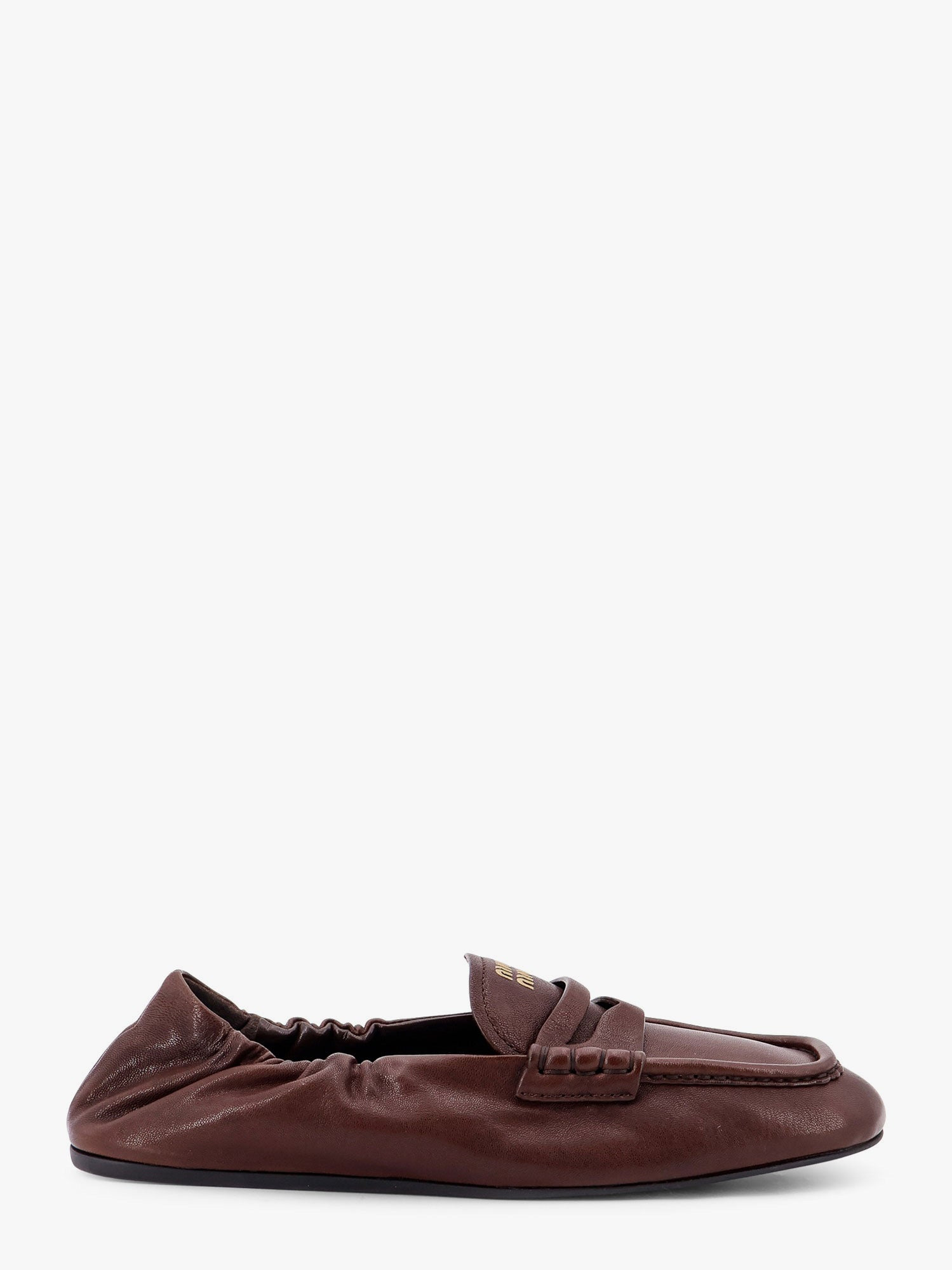 Miu Miu Women Ruches Leather Loafers With Lettering Logo