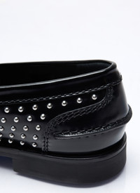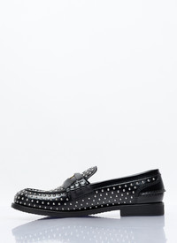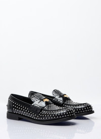 Studded leather loafers with logo plaque. Almond toe Penny strap Top logo plaque Stud embellishment Stacked heel Made in Italy 100% Leather 5D224E 055 F0002 SKU: 5D224E055F0002 Our Products Are 100% Genuine. In All Cases We Stand By The Authenticity Of Every Product Sold On Our Site. All sales are final and we only accept returns for quality issue. Buyer is responsible for any import tax/duty if applicable.