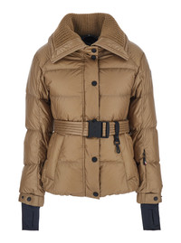 Moncler Grenoble Women 'Bataillouse' Beige Down Jacket With Logo Patch On The Sleeve And Front Belt