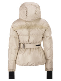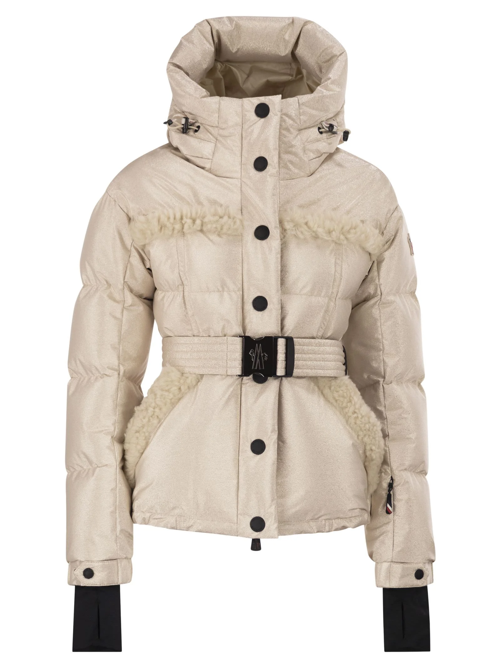 Perfect for the slopes, the Mondim ski jacket with shearling trim combines performance and style. The short down jacket stands out on the slopes with its eye-catching metallic effect, while the water-repellent treatment protects against the elements. Practical yet striking, the design takes on a feminine silhouette thanks to the removable belt. The garment is completed by functional details, including a protective snow skirt, water-repellent zips and cuffs with gaiters. - Designed for skiing and snowboarding - Made from metallic fabric - Polyester lining - Long-haired sheepskin trim - Adjustable hood - YKK® AquaGuard® Highly Water Resistant zip and press stud fastening - YKK® AquaGuard® Highly Water Resistant zip pockets - Internal smartphone pocket with YKK® AquaGuard® Highly Water Resistant zip - Ski pass pocket - Removable belt with glove hook - Windproof gaiter - Adjustable cuffs - Cuffs with stretch jersey gaiters DESIGNER ID: K20981A00020598UZ M10 57% Metallised fiber, 32% Polyamide, 11% Elastane Lining and Details padding: 100% Polyester 1 Material: 83% Polyamide, 17% Elastane Filling Pure goose down: 90% Down, 10% Feather Sheepskin leather (Spain) Size Type: NUM SKU: K20981A00020598UZM10 Our Products Are 100% Genuine. In All Cases We Stand By The Authenticity Of Every Product Sold On Our Site. All sales are final and we only accept returns for quality issue. Buyer is responsible for any import tax/duty if applicable.