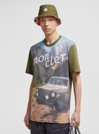 Moncler Genius Men Green Crewneck T-Shirt With Logoed Motif And Car Print In Cotton Jersey Man