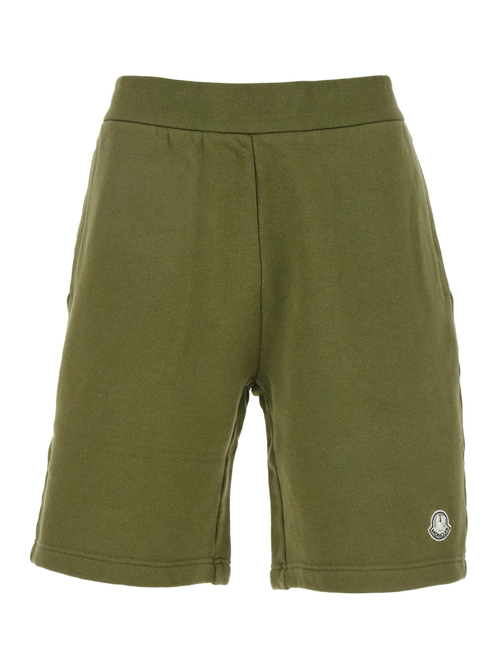 Moncler Genius Men Green Shorts With Elastic Waist And Logo Patch On The Front In Cotton Jersey Man