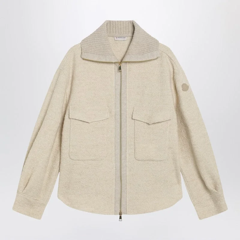 Moncler Light Beige Zip Jacket In Wool Blend Women