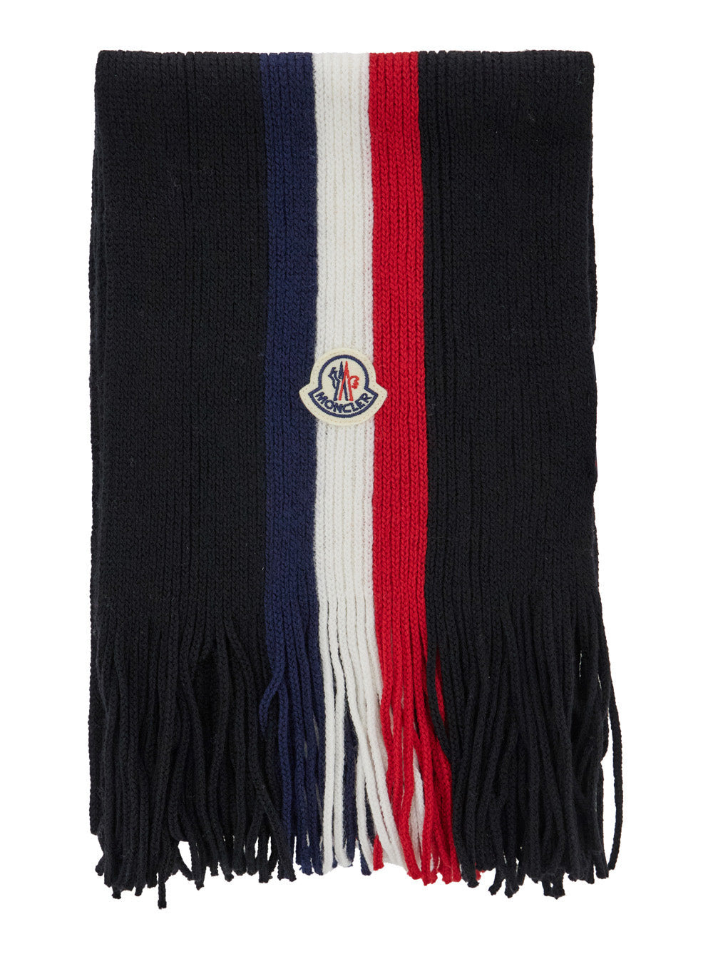 Moncler Men Multicolor Scarf With Tricolor Band And Logo Patch In Wool Man