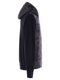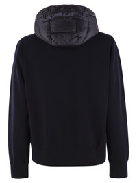 Versatile layering for different seasons, this wool hoodie features a down-filled front. In keeping with the brand's tradition, the cardigan is embellished with a quilted logo on the hood. Part of a multifunctional wardrobe, this lightweight knit can also be worn as an outerwear piece on warmer days. - Made of wool - Lining in longue saison - Padded longue saison front - Ribbed knit - Fineness 12 - Micro soft hood - Zip closure - Zipped pockets - Quilted logo - Iconic logo patch DESIGNER ID: K20919B00006M1131 776 Outer front: 100% Polyamide Base fabric: 100% Virgin wool Lining and Hood: 100% Polyamide Details padding: 100% Polyester Filling Pure goose down: 90% Down, 10% Feather Size Type: INT SKU: K20919B00006M1131776 Our Products Are 100% Genuine. In All Cases We Stand By The Authenticity Of Every Product Sold On Our Site. All sales are final and we only accept returns for quality issue. Buyer is responsible for any import tax/duty if applicable.