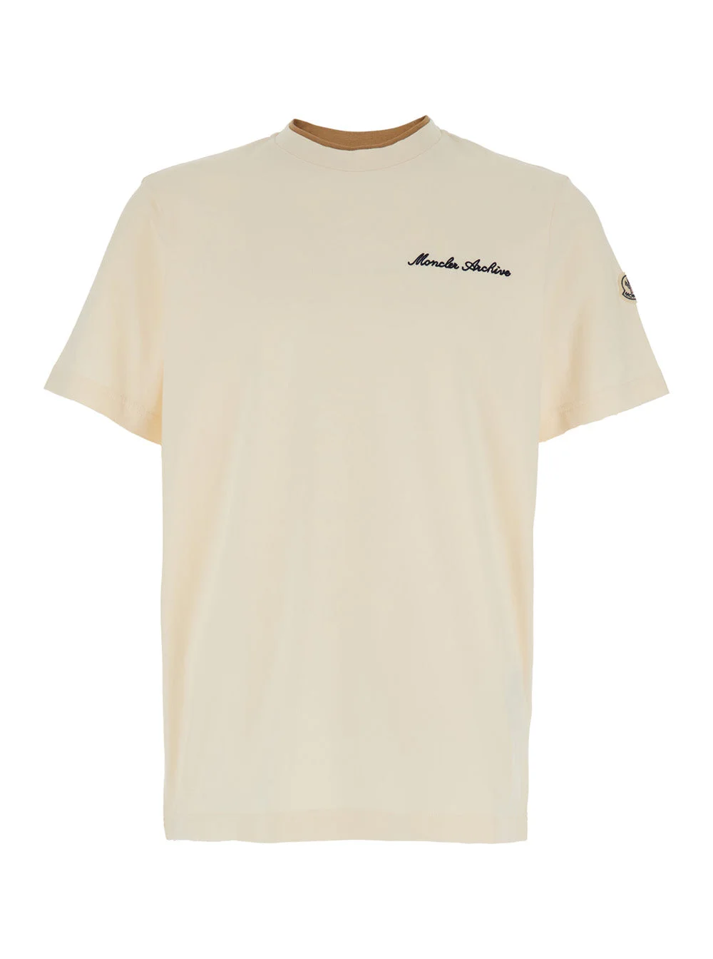 Moncler Men White T-Shirt With Embroidered Logo On The Front And Logo Patch On The Sleeve In Cotton