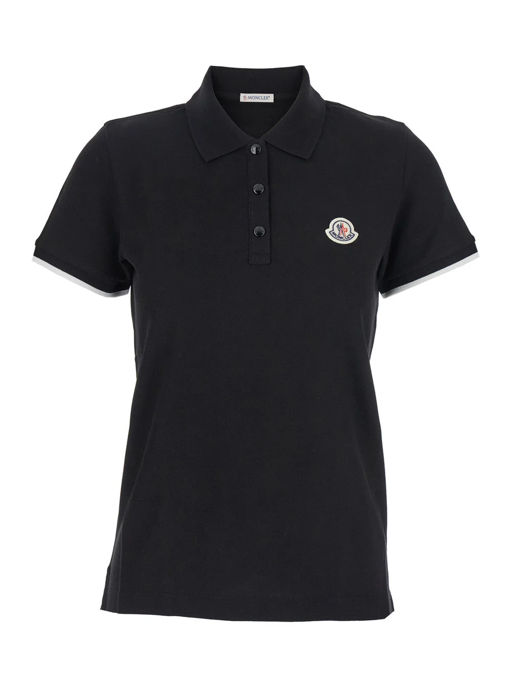 Moncler Women Black Polo Shirt With Logo Patch On The Front In Cotton Woman