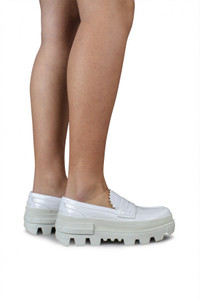 <p>Moncler loafers, Maxence model in white patent leather. Slip-on model. Tongue with notched finish. Heel with Moncler rubber lettering. Notched sole with rubber logo. Thickness of the sole: 6.8 cm. 100% leather. Made in Italy.</p> Size Type: IT SKU: H109B4D00010M1695001 Our Products Are 100% Genuine. In All Cases We Stand By The Authenticity Of Every Product Sold On Our Site. All sales are final and we only accept returns for quality issue. Buyer is responsible for any import tax/duty if applicable.