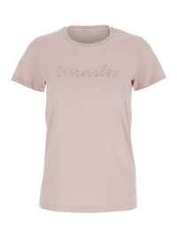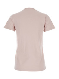 Moncler Women Pink T-Shirt With Embroidered Logo On The Front And Logo Patch On The Sleeve In Cotton