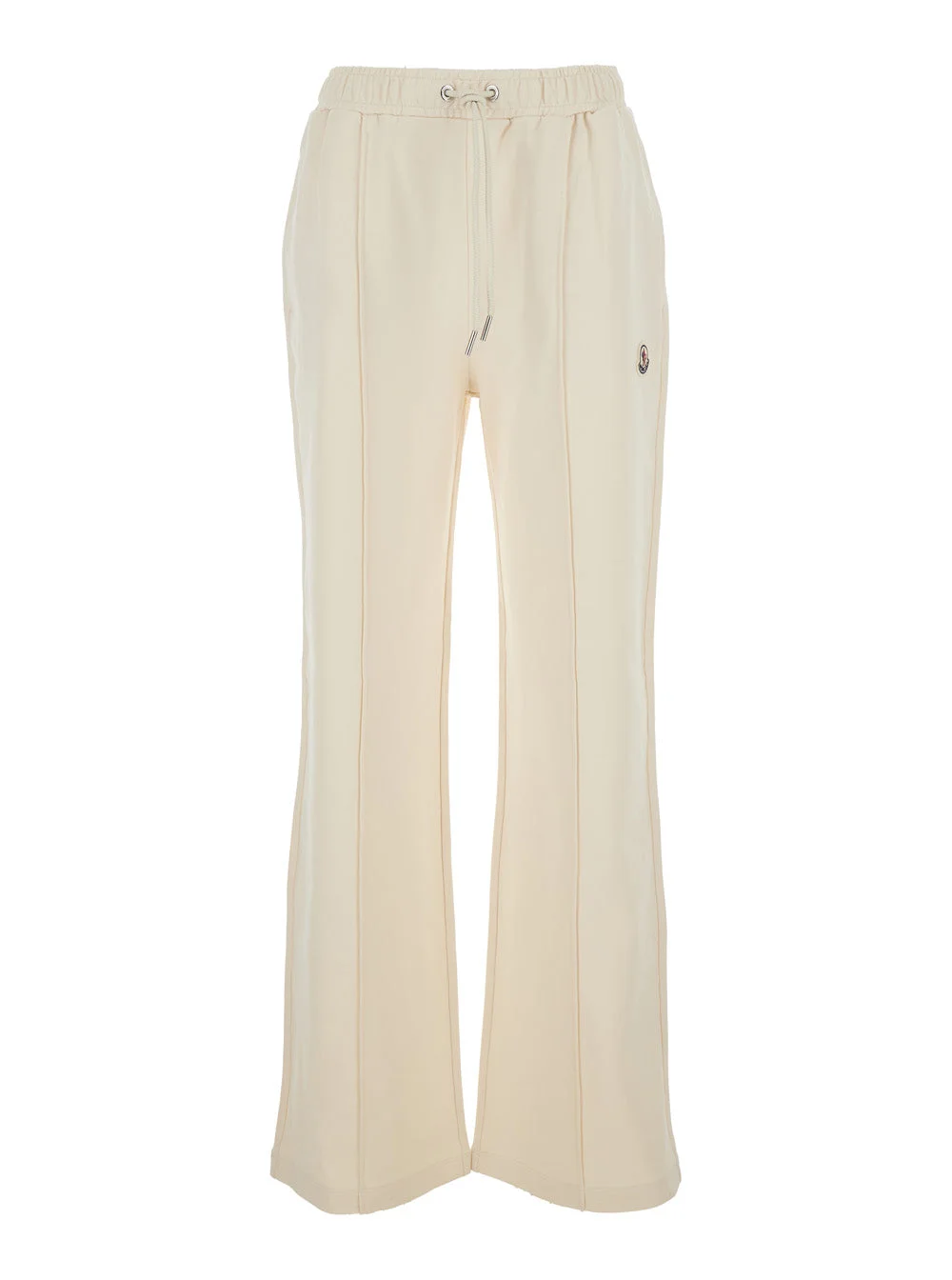Moncler Women White Trousers With Elasticated Waist And Logo Patch On Leg In Cotton Woman