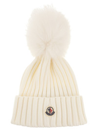 Moncler Women Wool Cap With Synthetic Pompom