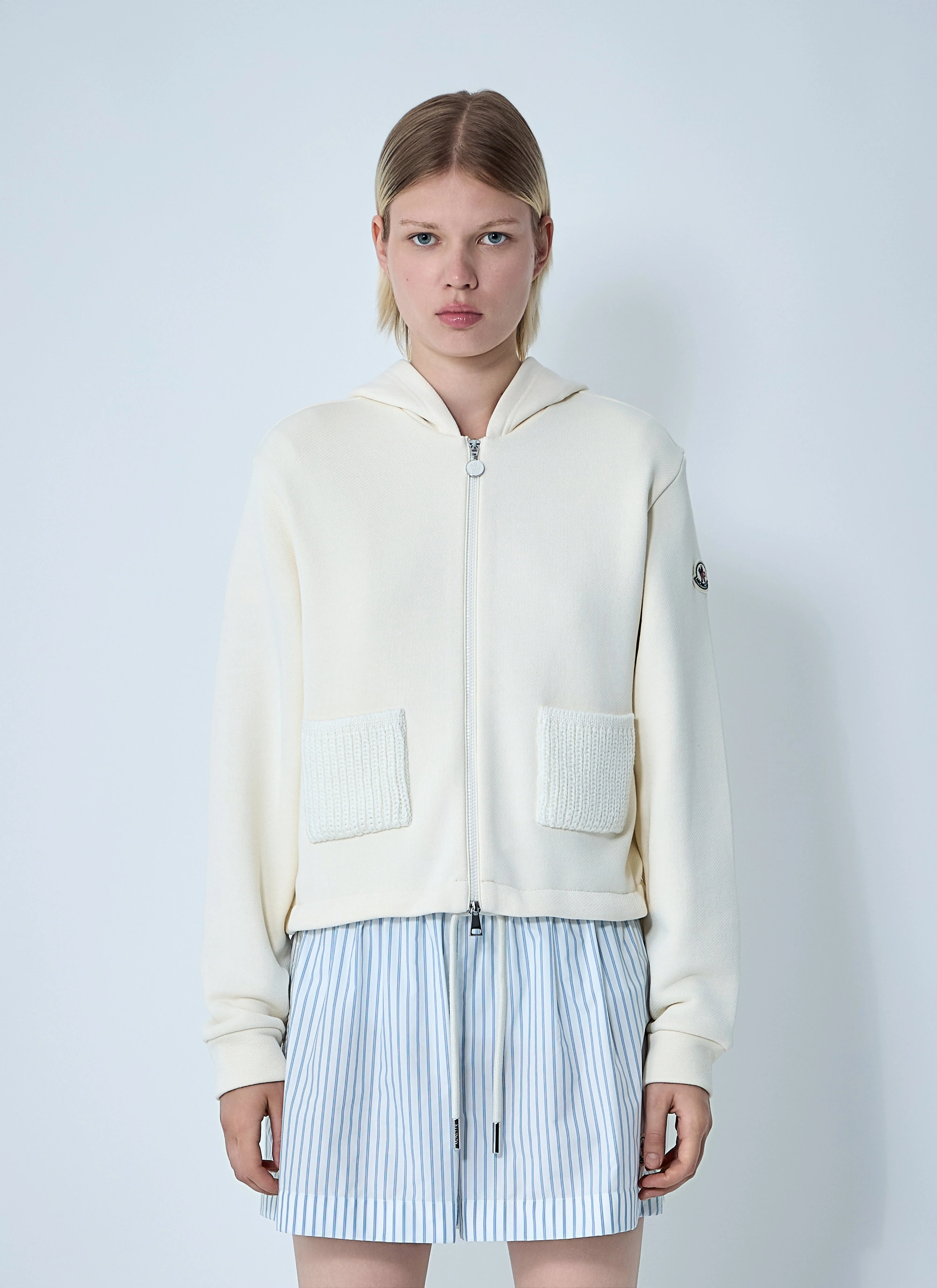Ribbed knit-trimmed cotton-blend jersey hoodie Cream