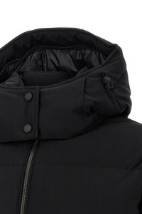 'Misti Puffer' down jacket in water-repellent fabric with goose feather padding, trapezoid silhouette, adjustable and removable hood with removable fur insert, standing collar, front zip closure, pockets, tongue sleeve with knitted cuffs and leather patch with metal logo applique, drawstring and knitted gaiter on the hem. Color: Black Size & Fit: true to size fit Composition: 76% nylon, 24% elastane Made in: South Korea SKU: M35LJ137S305 Our Products Are 100% Genuine. In All Cases We Stand By The Authenticity Of Every Product Sold On Our Site. All sales are final and we only accept returns for quality issue. Buyer is responsible for any import tax/duty if applicable.