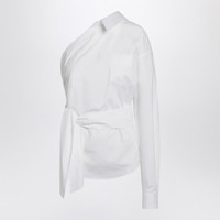 White cotton shirt by Moschino, characterized by one-shoulder design, long sleeve with button cuff, curved hem, an applied pocket on the chest, asymmetric design, and a waist sash. Model wears size 40 IT Model measurements: Height: 179 cm Chest: 82 cm Waist: 65 cm Hips: 90 cm Size Type: IT Material: Cotton SKU: J02110531/QMOSCH2001102 Our Products Are 100% Genuine. In All Cases We Stand By The Authenticity Of Every Product Sold On Our Site. All sales are final and we only accept returns for quality issue. Buyer is responsible for any import tax/duty if applicable.