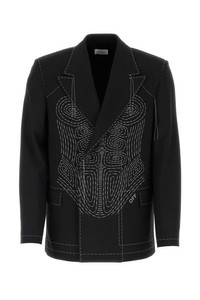 Off White Men Black Stretch Polyester Blend Blazer