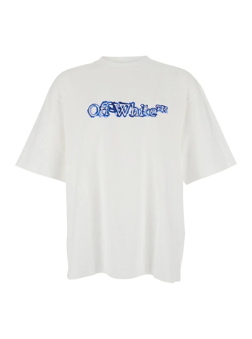 Off-White Men 'Cloudy Arrow' White Crewneck T-Shirt With Logo Lettering On The Front And Maxi Arrows