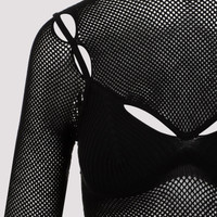 Off White Net Arrow Bralette Black Viscose Top. Black mesh, round neckline, cut-out details, layered effect with strapped bra, long sleeves, straight hem, ribbed edges. Viscose | 67%VISCOSE 28%POLYESTER 4%POLYAMIDE 1%POLYURETHANE Size Type: IT SKU: OWHT020S24KNI001Black Our Products Are 100% Genuine. In All Cases We Stand By The Authenticity Of Every Product Sold On Our Site. All sales are final and we only accept returns for quality issue. Buyer is responsible for any import tax/duty if applicable.