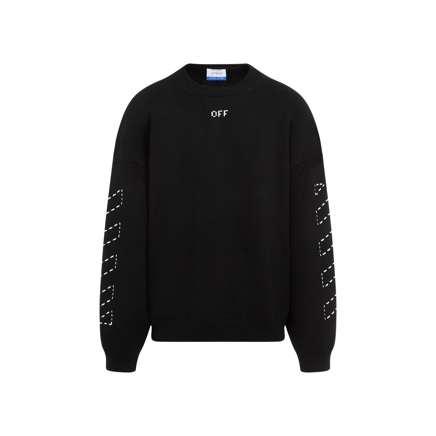 Off White Stitch Arrow Diags Black Cotton Pullover. Black cotton yarn, crew neck, logo on the front, white contrasting embroidery on the sleeves and on the back, ribbed edges. Cotton | 74%COTTON 26%POLYAMIDE Size Type: INT SKU: OMHE191C99KNI001Black Our Products Are 100% Genuine. In All Cases We Stand By The Authenticity Of Every Product Sold On Our Site. All sales are final and we only accept returns for quality issue. Buyer is responsible for any import tax/duty if applicable.
