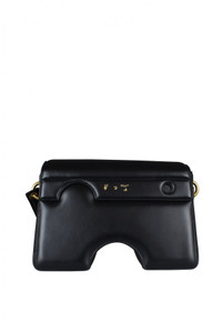 Off-White shoulder bag in smooth calf leather. Burrow 22 large model in black color. Iconic cutouts on the whole. Adjustable leather shoulder strap with pin buckle. Gold logo embossing at back. Magnetic snap flap. Interior card slots. Red and black polished leather lining. Gold finish. Dimensions: length 32 cm x height 20 cm x width 11 cm. Made in Italy. Size Type: INT SKU: OWNN026C99LEA001 Our Products Are 100% Genuine. In All Cases We Stand By The Authenticity Of Every Product Sold On Our Site. All sales are final and we only accept returns for quality issue. Buyer is responsible for any import tax/duty if applicable.