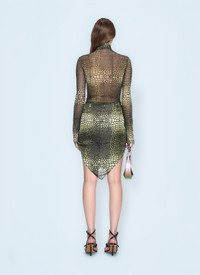 Green Stamp Crocodile Mesh Long-sleeved Top