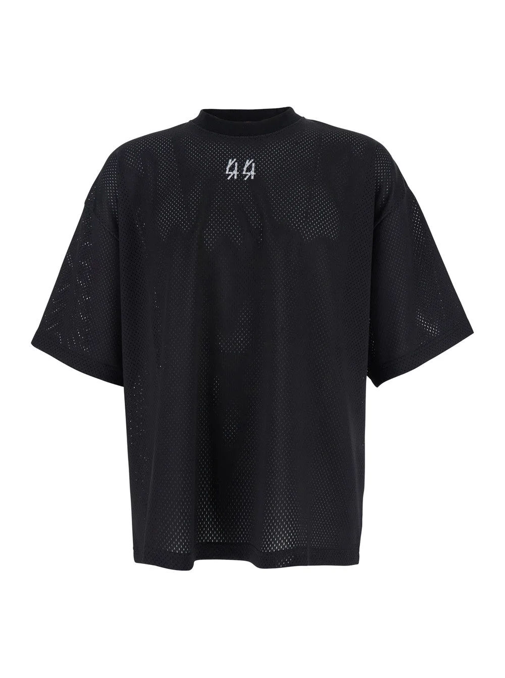 44 Label Group Men Black Crew Neck T-Shirt With Logo On Front And Back In Cotton Man