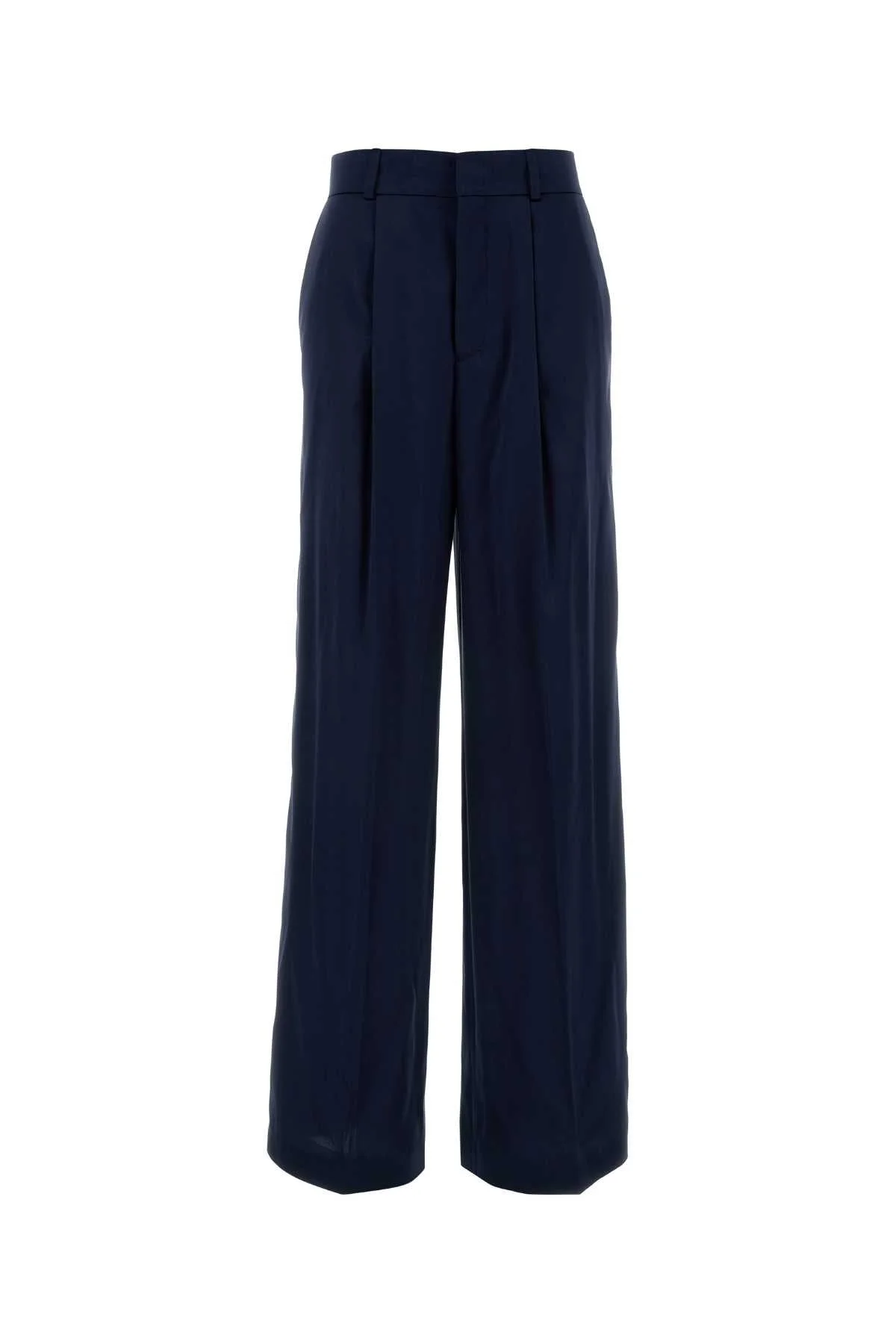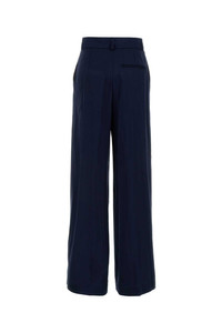 Alberta Ferretti Women Navy Blue Satin Wide-Leg Pant