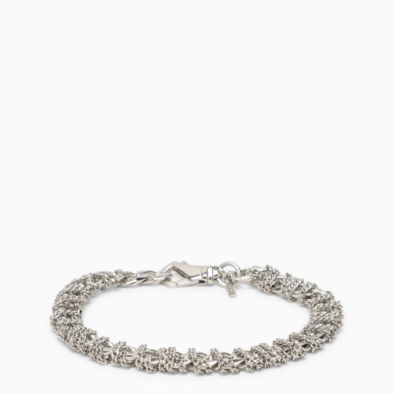 Bracelet with intricate 925 sterling silver chain work by Emanuele Bicocchi, featuring a hook clasp and engraved logo. The product is handmade and may vary slightly from the image. Emanuele Bicocchi jewellery is made in 925 untreated and burnished silver, which gives it an antique look. The plating may fade over time, therefore it is advised to not expose the jewellery to corrosive/aggressive agents. Size Type: INT Material: Metal SKU: CTAB3MET/NEMANUSI323 Our Products Are 100% Genuine. In All Cases We Stand By The Authenticity Of Every Product Sold On Our Site. All sales are final and we only accept returns for quality issue. Buyer is responsible for any import tax/duty if applicable.