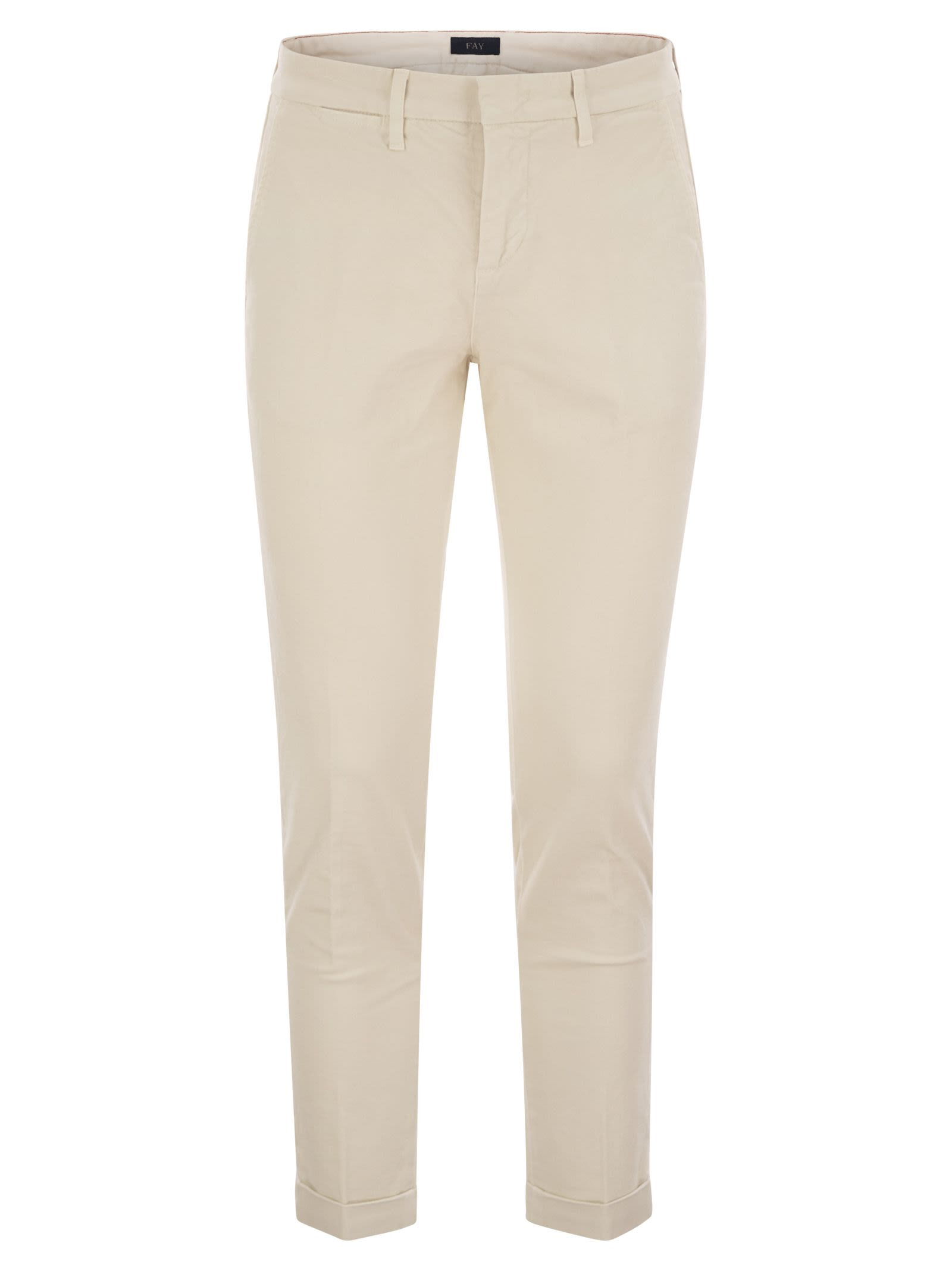Slim-fit 5-pocket trousers in garment-dyed cotton gabardine, with leather Fay label on the back. Featuring front pockets with rivets, a coin pocket and back patch pockets, it is closed with a zip and stud button. - Made in Italy - Fitting: slim - 5 pockets - Garment dyed DESIGNER ID: NTM8649187TQGG C002 98% Cotton, 2% Elastane Size Type: W SKU: NTM8649187TQGGC002 Our Products Are 100% Genuine. In All Cases We Stand By The Authenticity Of Every Product Sold On Our Site. All sales are final and we only accept returns for quality issue. Buyer is responsible for any import tax/duty if applicable.