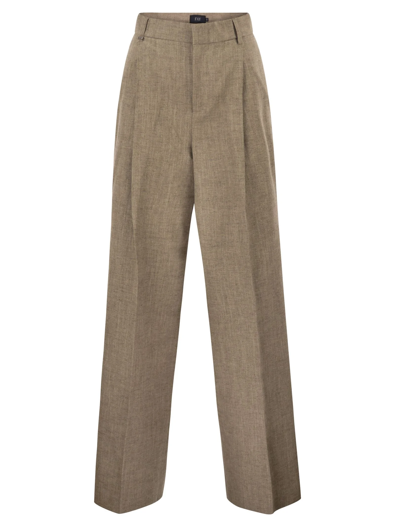 Classic trousers in cotton and linen micro-twill with pleats and a pressed crease. Featuring diagonal front pockets and flat back pockets, they are embellished with a metal loop with the Fay logo embossed on it. The model fastens with a zip and metal hook. - Pleats - Pressed crease - Wide leg DESIGNER ID: NTW80524940ZDTC400 80% Cotton, 20% Linen Size Type: IT SKU: NTW80524940ZDTC400 Our Products Are 100% Genuine. In All Cases We Stand By The Authenticity Of Every Product Sold On Our Site. All sales are final and we only accept returns for quality issue. Buyer is responsible for any import tax/duty if applicable.